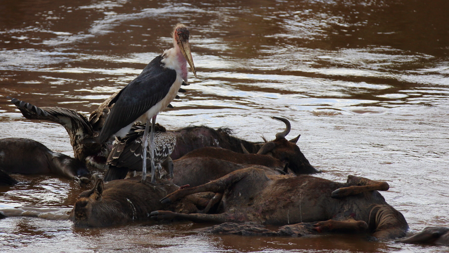 die bei der Flussüberquerung umgekommenen Gnus hatten sie kurzzeitig