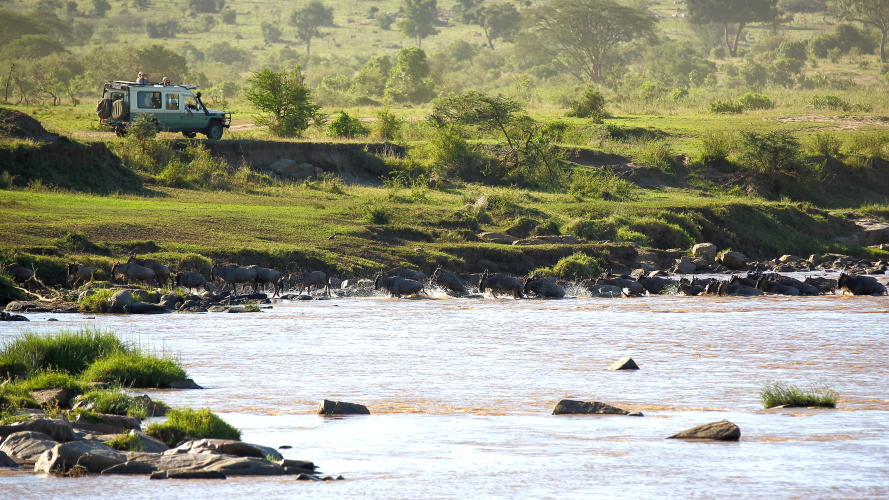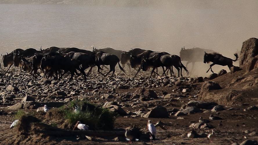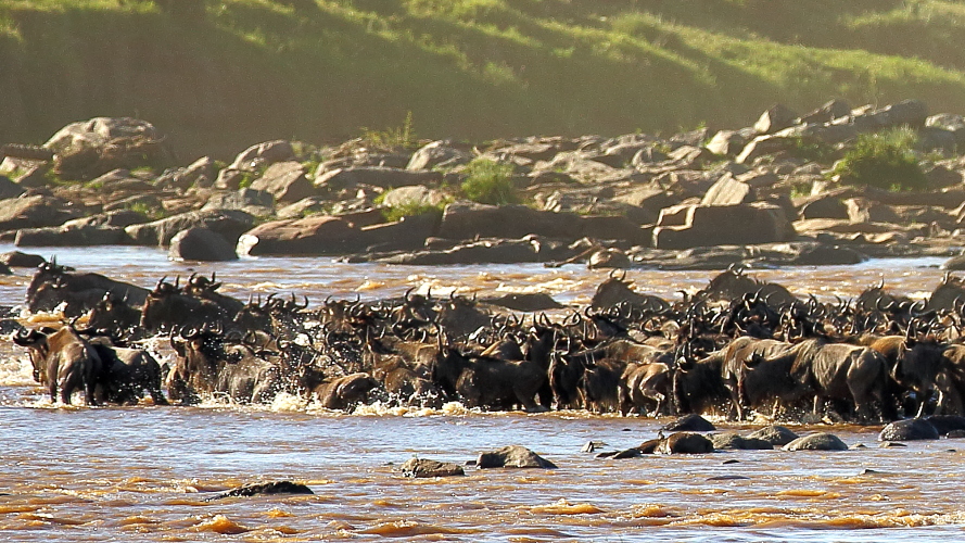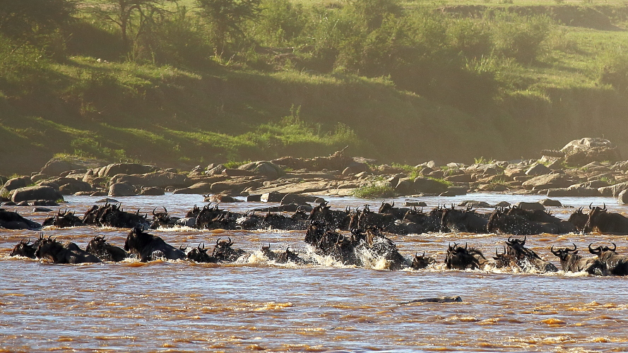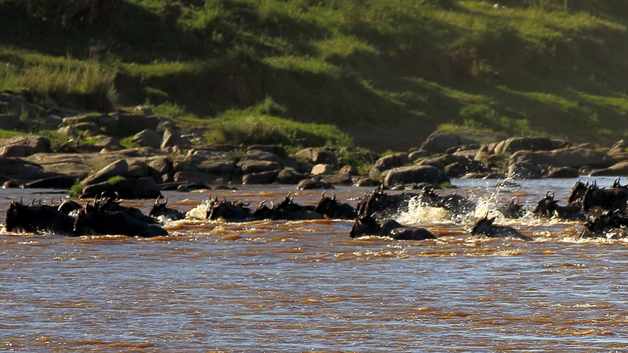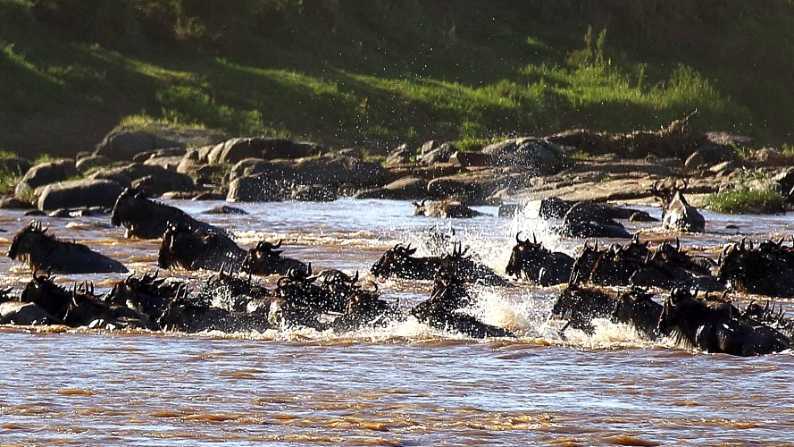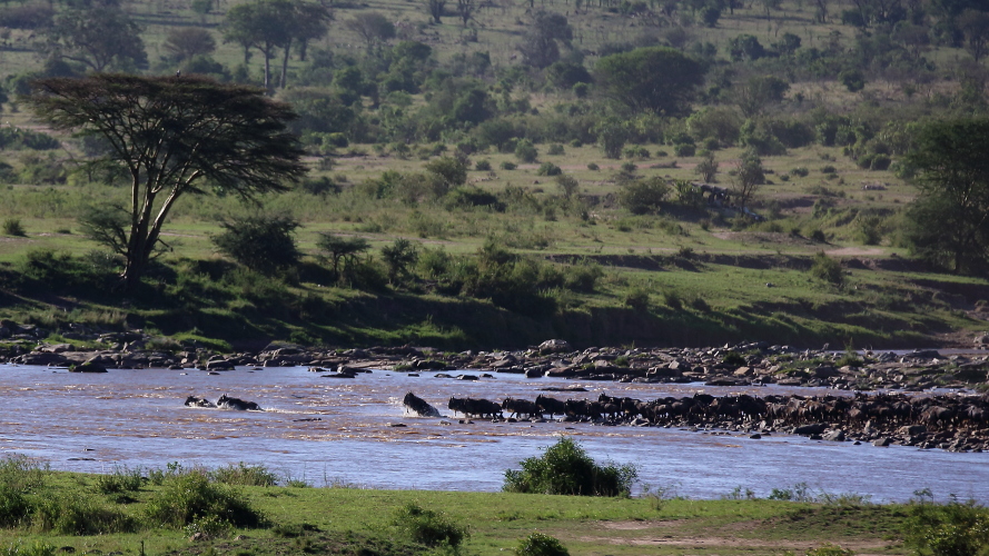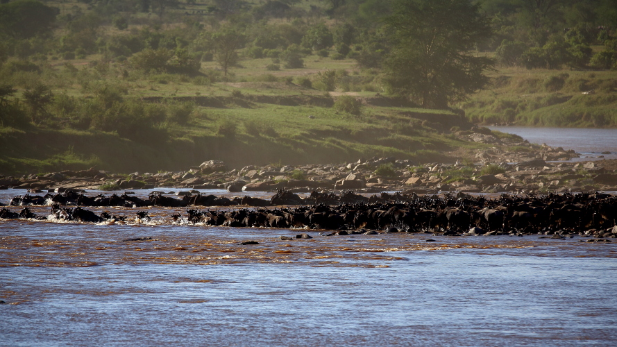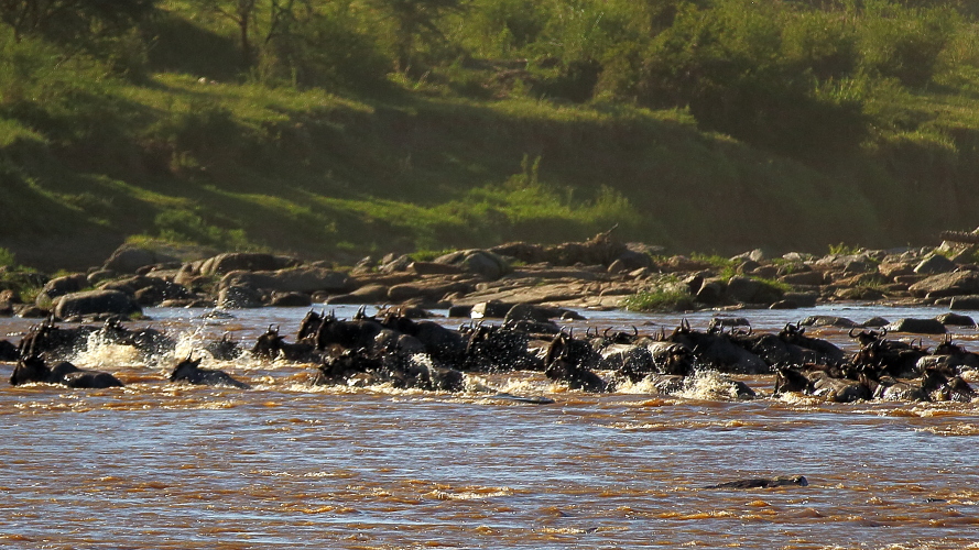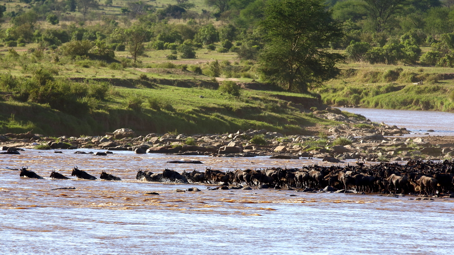in den Süden und müssen dabei den Mara-Fluss überqueren. Aufgrund zahlreicher