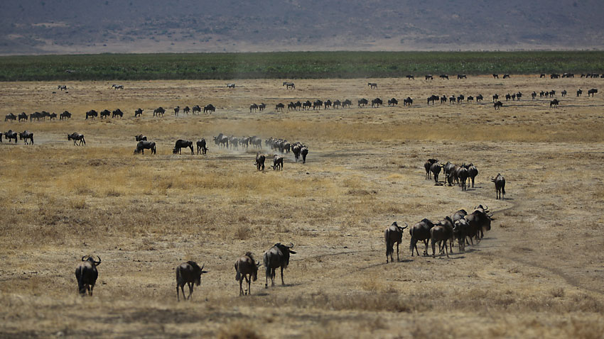 Im Krater machen wir auch erstmals mit größeren Gnu-Herden
