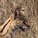 Steppengras verborgen. Und plötzlich war der Leopart in