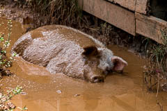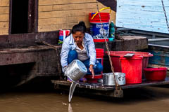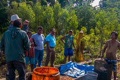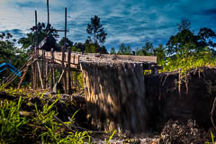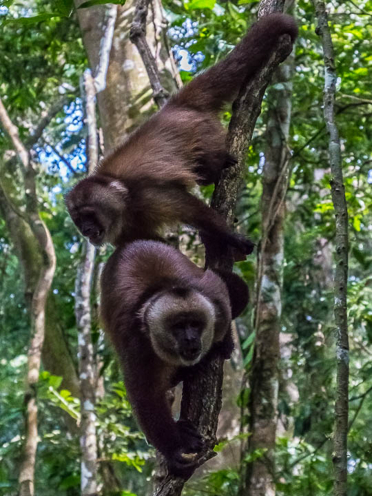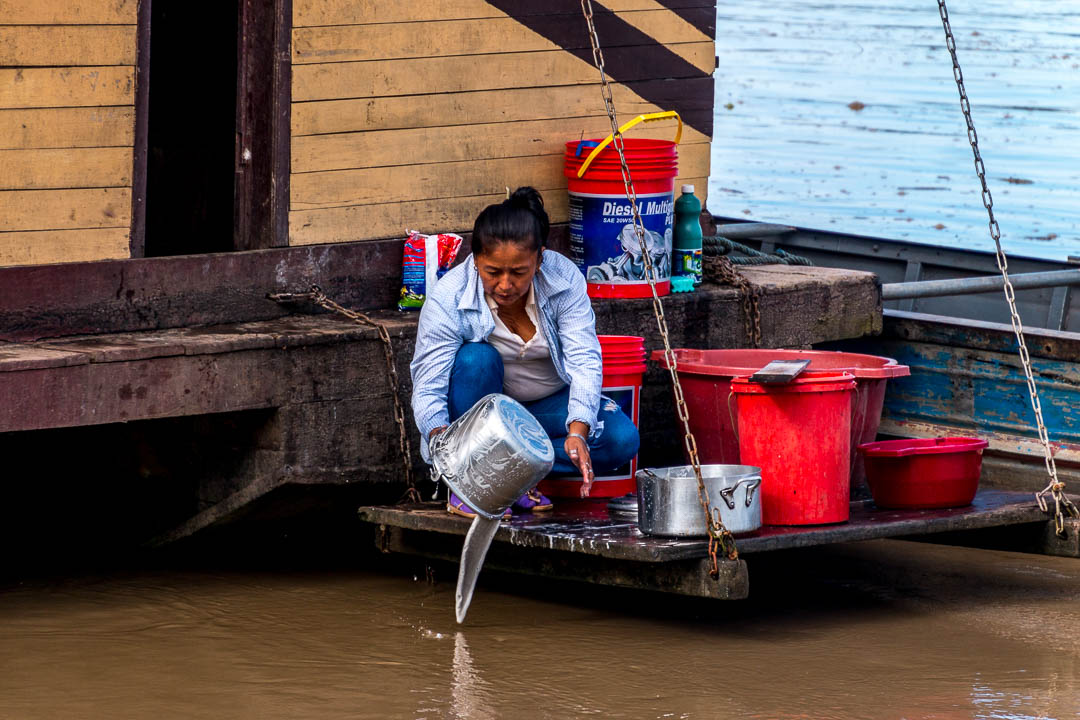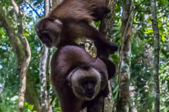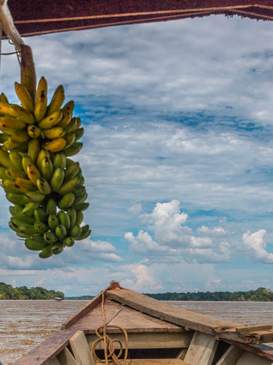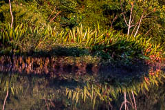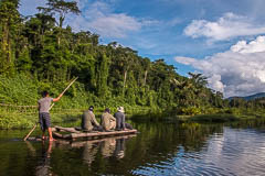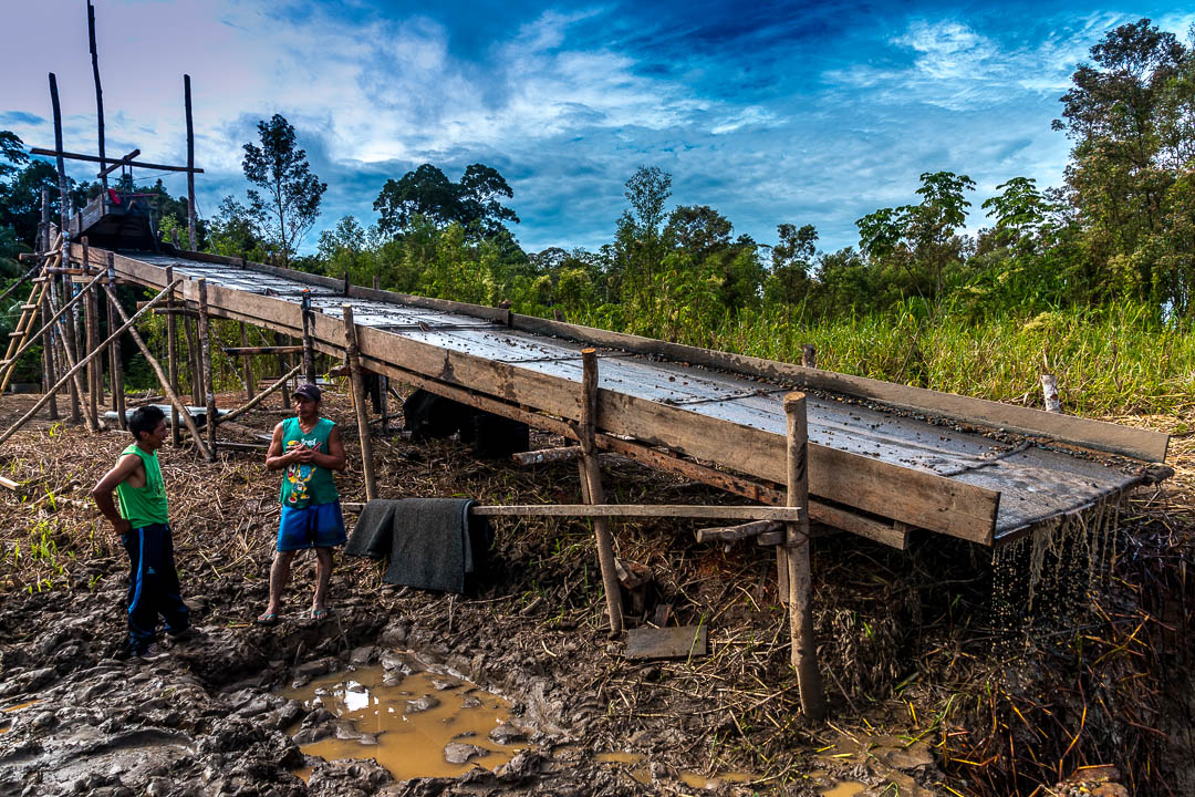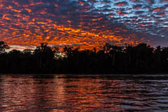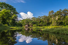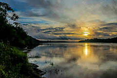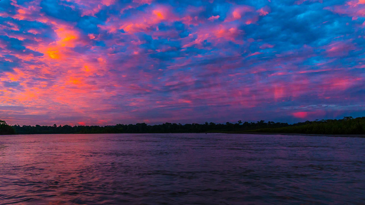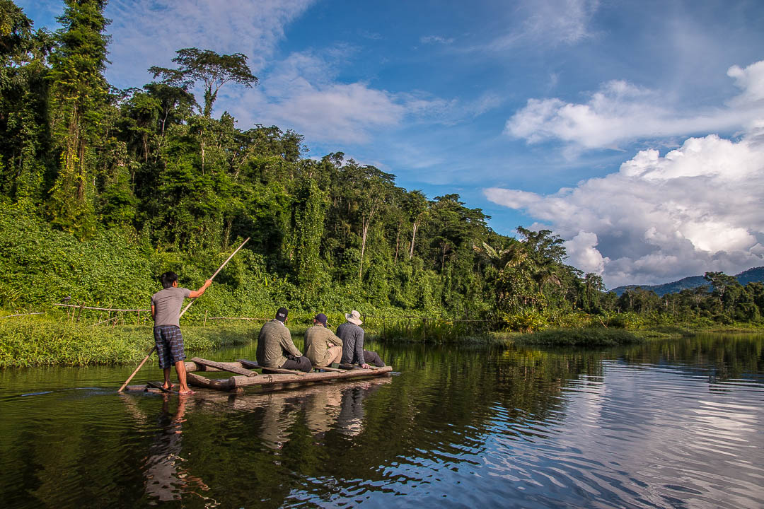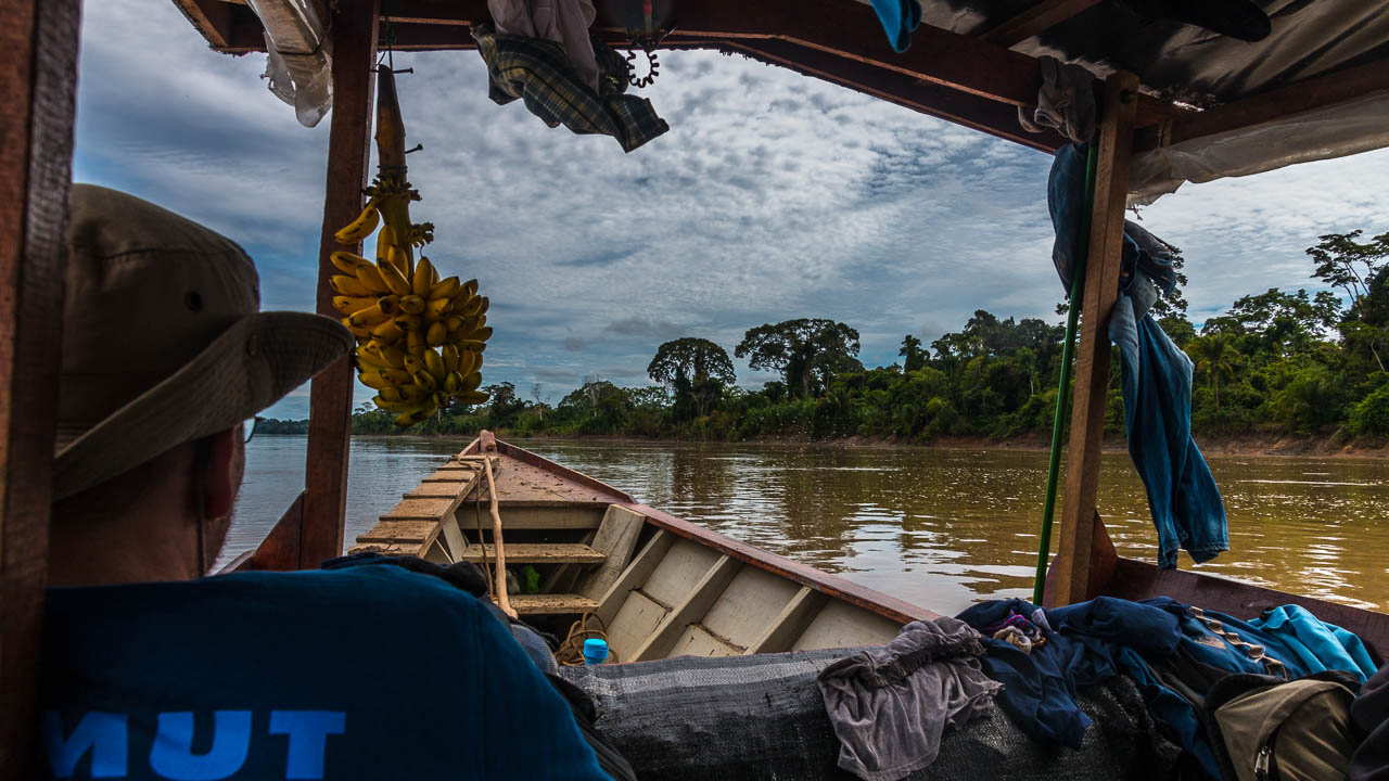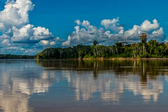 Bei Bocu Manu verlassen wir das Gebiet des Manu Nationalparks, folgen aber weiterhin dem Flusslauf desRio Madre de Dios. Durch den fehlenden Naturschutz des Nationalparks verstärkt sich zwar der Einfluss des Menschen (z.B. durch Goldwäscher oder einfache landwirtschaftliche Nutzung), wir finden aber immer noch eine abenteuerlich ungerührte Flusslandschaft und idyllische Altarme mit faszinierender Flora und Fauna. Allerdings veralssen wir hier endgültig die klassischen Trampelpfade des Südamerika-Tourismus. Das gesamte Gebiet ist nicht sehr bevölterk und wird von den Überseetouristen nur wenig bereist. Für Urwaldfans und Naturliebhaber ist das Gebiet deshalb die erste Wahl. Einen Boom erlebte die Gegend nach 1978, als Meldungen von Goldfunden im Gebiet des Rio Madre de Dios die Runde machten. Am Fluss trifft man daher auch heute noch immer wieder mehr oder weniger illegale Goldwäscher, die mit ihren zum teil recht urtümlichen Waschanlagen den Goldstaub aus dem Flussschotter waschen. Für uns waren vor allem die verschlafenen Altarme des Flusses (z.B. Lago Sandoval) mit ihrer atemberaubenden Landschaft sowie die Salzlecken (z:B. Collpas de los Guacamayos), bei denen wir aus nächster Nähe Tapire und Papageien beobakten konnnten, interessante Etappenziele.