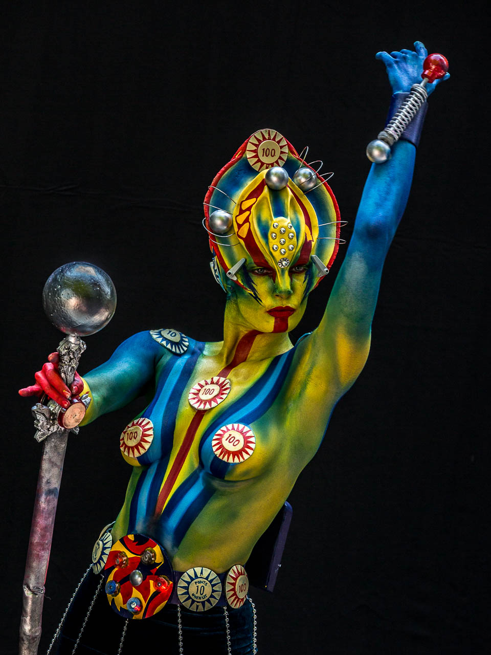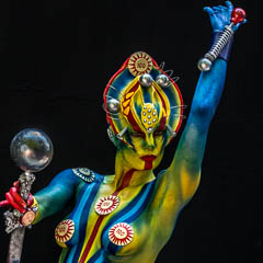 Die Kategorie"Special Effects"lässt die reine Körpermalerei schon ein schönes Stück hinter sich. Hier wird mit ganz verschiedenen Applikationen und Materialien der Körper der Modelle zu einem lebenden Gesamtkunstwerk umgestaltet. Das Model darf dabei aber nicht einfach in Schaumstoff-Applikationen und Technick gesteckt werden, sondern muss dann auch noch eine Live-Performance vorführen, so dass die Bewegungfreiheit voll erhalten bleibt. Manche der Künstler aus dieser Kategorie haben bereits in großen Hollywood-Filmen maßgeblich mitgewirkt oder werden es nach diesem Festival tun ...